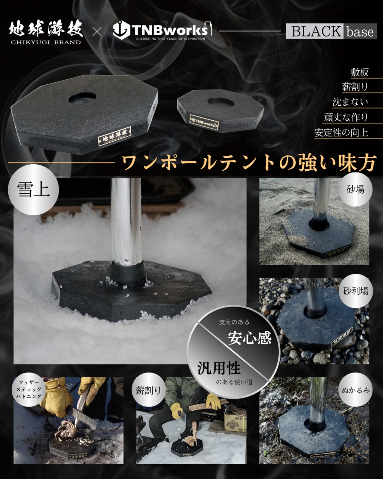 また、敷板として使用しないときは裏面が薪割り台となります。(一旦設営→薪割り→ポールに敷くで同日利用も可能です。)